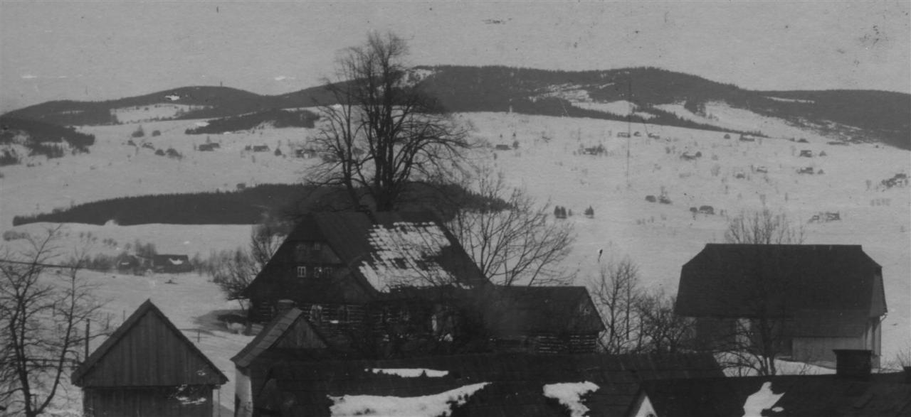 Vysoké nad Jizerou, pohled na Kokrháč a Kozí hřbety přes Tříčské návsí, Polopruť, Vinkl a Tříč, foto Josef Hladík (inv. č. VMV 1954, fol. 1r).