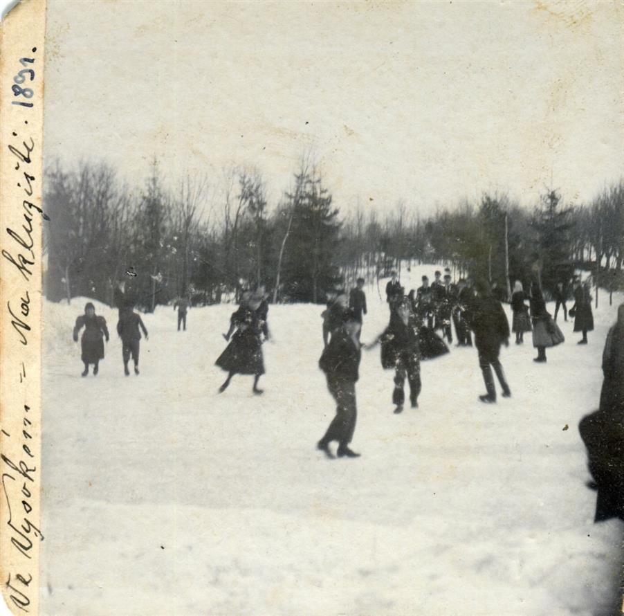 Jizerou, kluziště výjimečně zřízené v lednu 1911 na Sokolně, tedy sokolském, hasičském i dětském cvičišti u městských sadů, foto Josef Hladík (inv. č. VMV ...