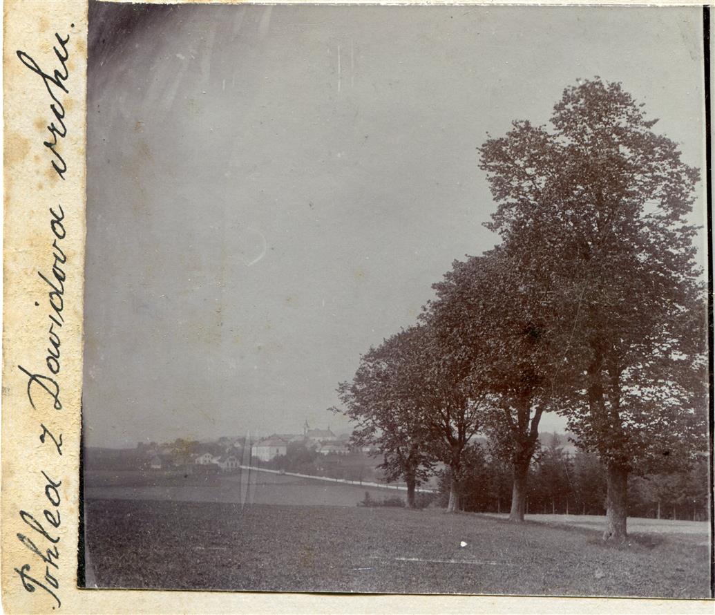 Vysoké nad Jizerou, pohledu z Davidova, jinak Šibeničního, vrchu na nemocnici, foto Josef Hladík (inv. č. VMV 2051, fol. 1ra).