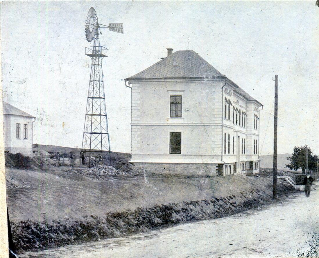 Vysoké nad Jizerou, stavební práce u větrného čerpadla nemocničního vodovodu, foto Josef Hladík (inv. č. VMV 2067, fol. 1ra).
