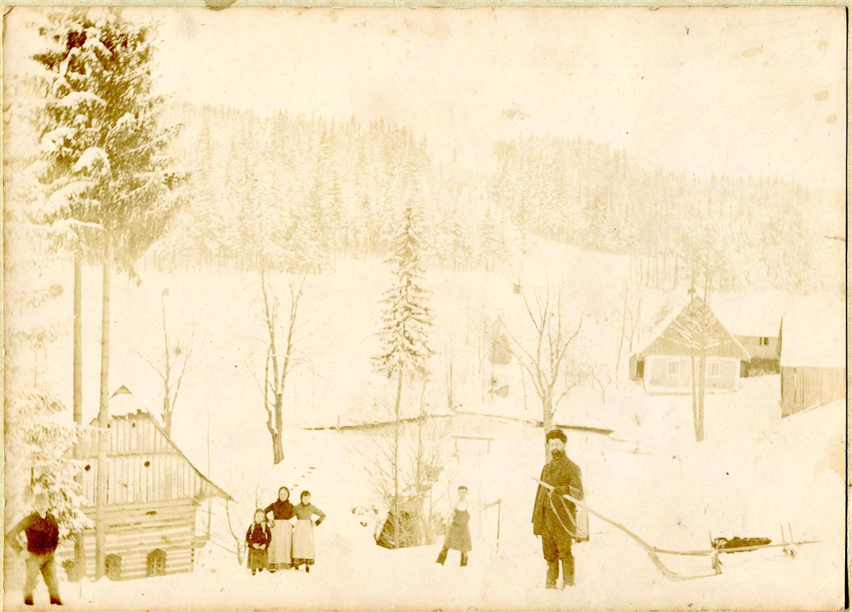 Vysoké nad Jizerou, Polouprut, čili Polopruť, roku 1915, foto Josef Hladík (inv. č. VMV 2317, fol. 1ra).