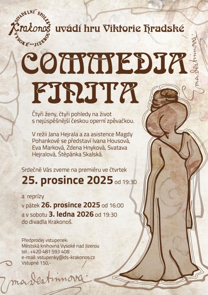 DS Krakonoš Vás srdečně zve na divadelní představení Commedia Finita dne 25.prosine od 19:30, 26. prosince od 16:00, 3. ledna od 19:30 do divadla Krakonoš. Předprodej vstupenek v Městské knihově ve Vysokém nad Jizerou. Vstupné 150,-