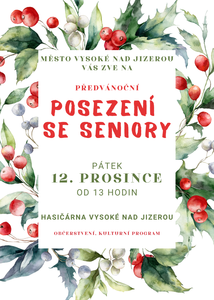 Město Vysoké nad Jizerou zve seniory na předvánoční posezení dne 12. prosince od 13 hodin do hasičárny. Občerstvení a kulturní program zajištěn. Budeme se na Vás těšit.