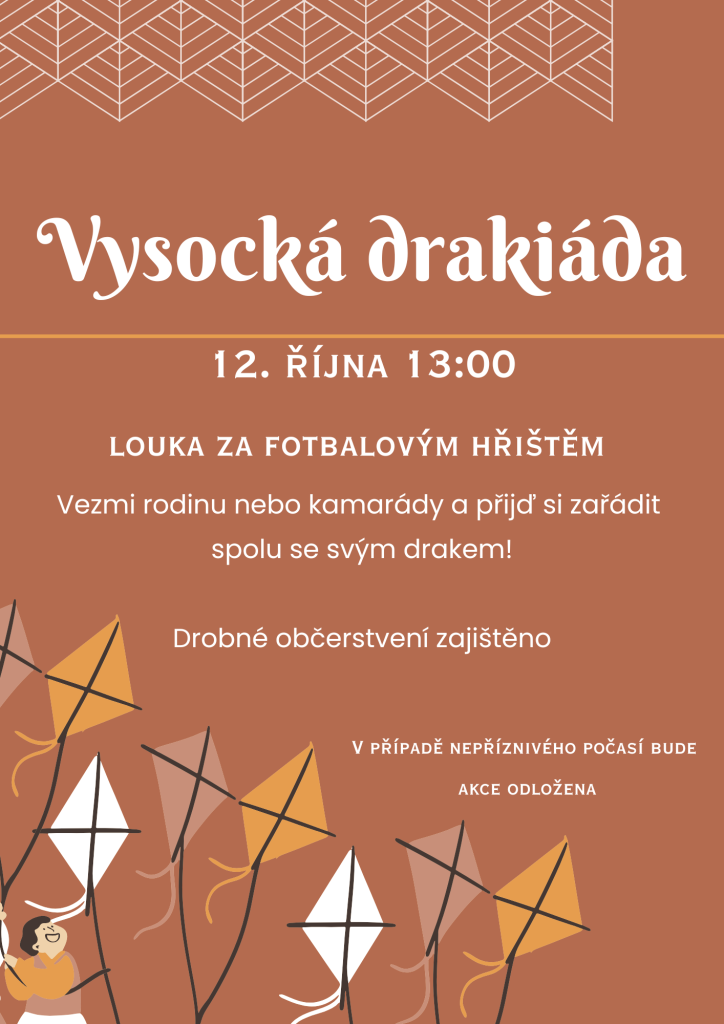 Pouštění draků s drobným občerstvením na louce poblíž fotbalového hřiště
