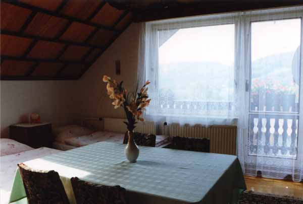 Kapacita 9 lůžek, apartmán 4+3+2 s možností 2 přistýlek, sociální zařízení společné, společenská místnost s TV/SAT, kuchyň s lednicí a sporákem, balkón.