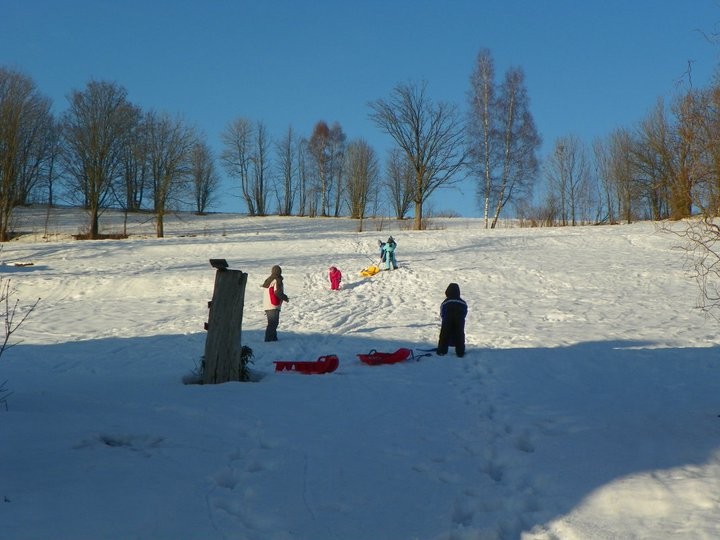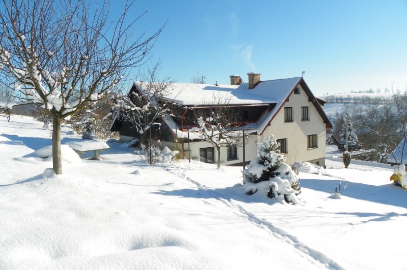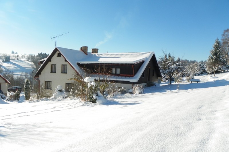 V zimě: 300 metrů od domu skiareál Kamenec (Jablonec nad Jizerou). Šachty, Petruškovy vrchy a Větrov - 2 km autem (Vysoké nad Jizerou). Uzamykatelná garáž na lyže, sáňky a boby. Sáňkování, bobování a stavění sněhuláků je možné na loukách přímo u domu. Sauna po předchozí dohodě - pouze v zimním období. Cena: od 1.750,-/os./týden. Děti mají slevu až 50%.