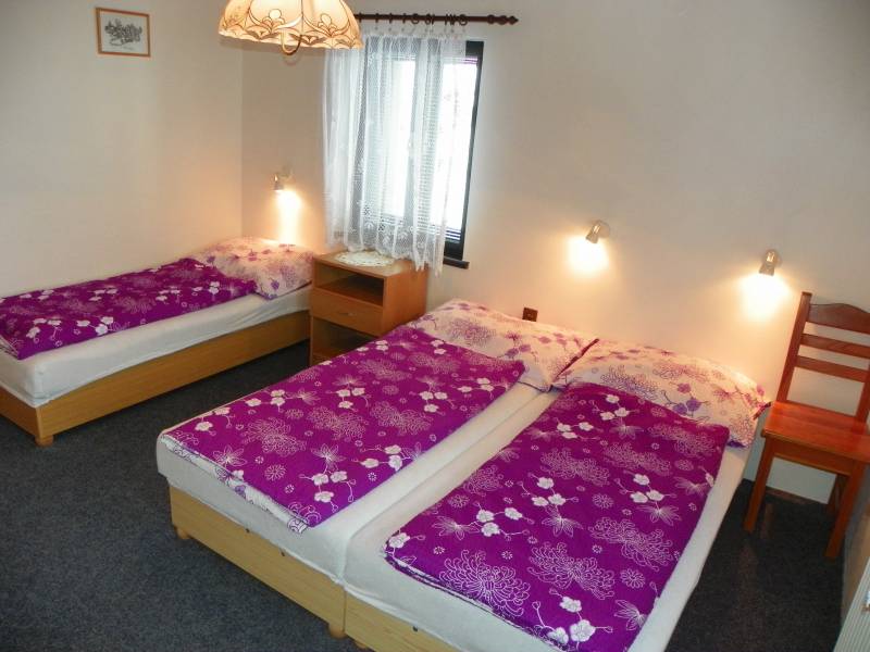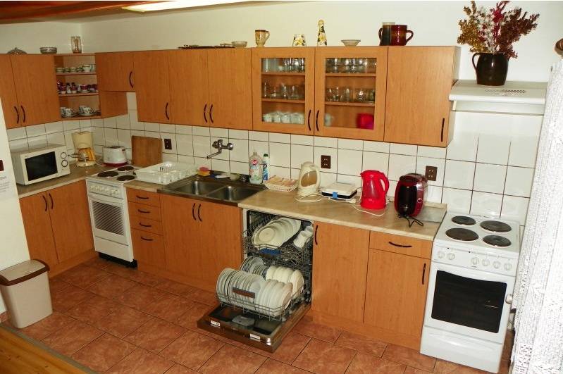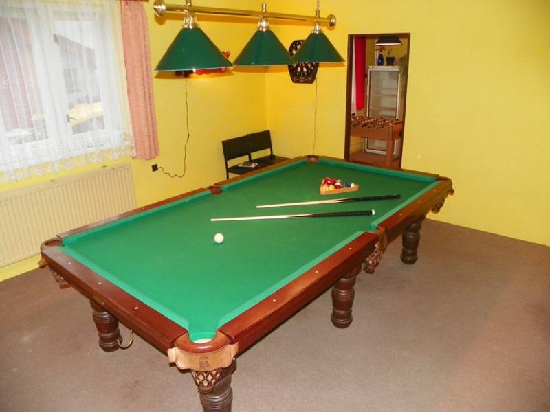 Celková kapacita patra je 18 osob + 1 dětská postýlka = 5 pokojů (2x třílůžkový a 3x čtyřlůžkový), 6 koupelen, 5 ledniček, vana, vybavená kuchyň (myčka nádobí, dva el. sporáky, dvě rychlovarné konvice, domácí espresso Bosch Tassimo, kávovar, mikrovlnka, toustovač, utěrky, nádobí, hrnce..), společenská místnost s TV. WI-FI zdarma po celém objektu, billiard, stolní fotbal a el. šipky.